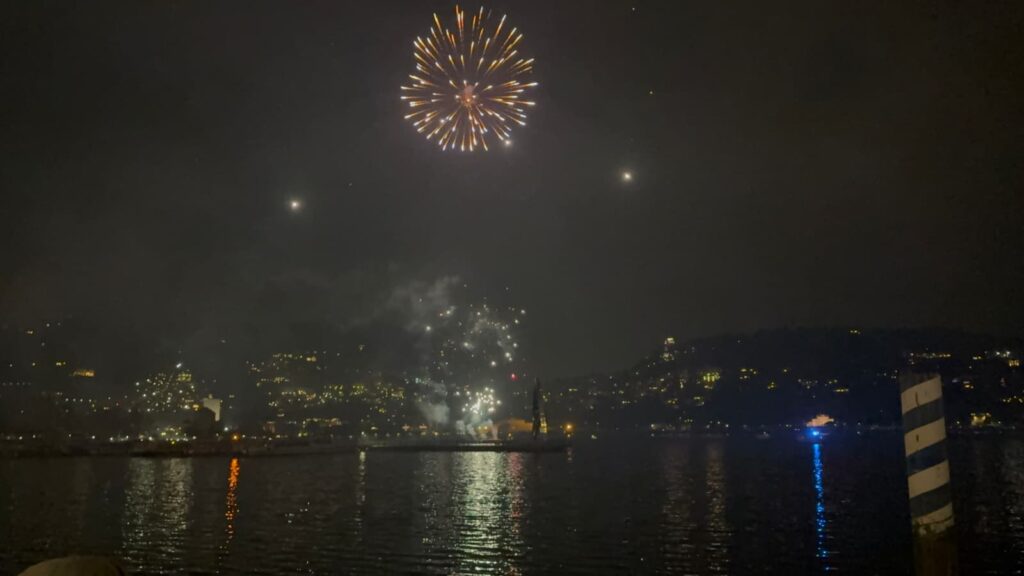 Notte di Capodanno a Como all’insegna della festa e dei fuochi d’artificio. Come da tradizione allo scoccare della mezzanotte il primo bacino del Lago è stato illuminato dallo spettacolo pirotecnico che ha scandito il passaggio tra il 2025 e il 2026. Centinaia di persone hanno scelto di festeggiare con lo sguardo rivolto al cielo. Moltissimi si sono dati appuntamento sul lungolago cittadino, da viale Geno a Villa Olmo, e molti altri hanno ammirato lo spettacolo dai paesi affacciati sul Lario. Da Brunate, ad esempio, la prospettiva, oltre che sulla città, era molto più ampia ed estesa tanto da poter scorgere le molte luci che hanno fatto brillare il territorio. In città i fuochi come al solito sono stati lanciati dalla diga foranea, uno spettacolo durato circa mezz’ora.
