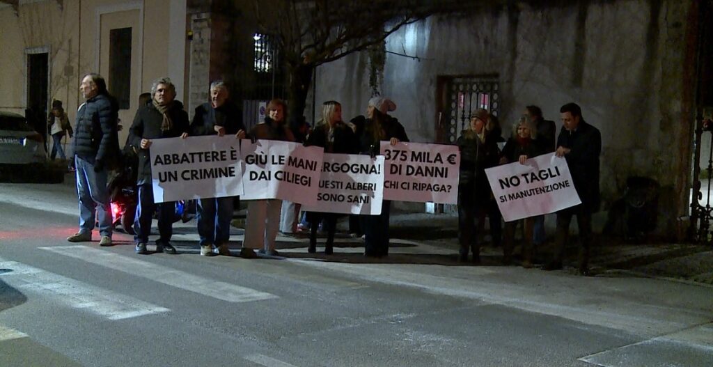 “Abbattere è un crimine”, “Giù le mani dai ciliegi”, “No agli abbattimenti senza motivo”, “375mila euro di danni, chi ci ripaga?”. E ancora: “Vergogna, questi alberi sono sani”. Con questi striscioni prende il via la nuova manifestazione in via XX Settembre, per dire no all’annunciato taglio dei ciliegi.