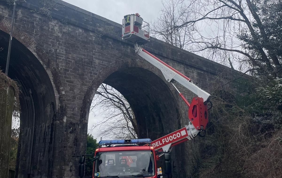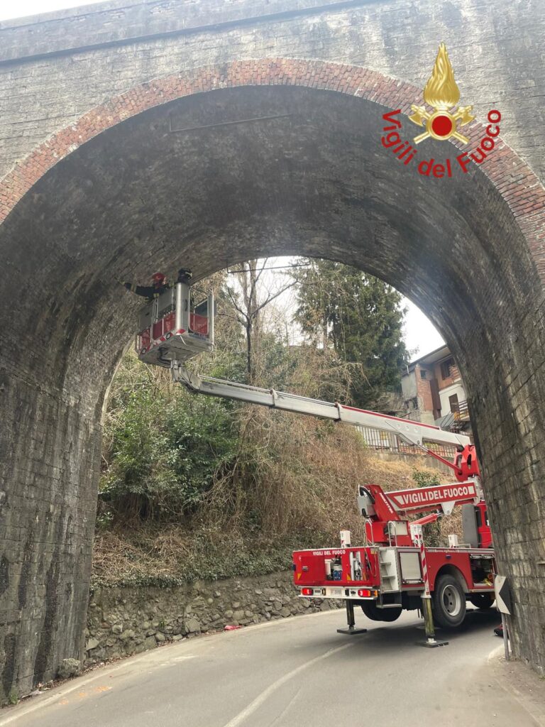Intervento urgente dei vigili del fuoco alle 11.15 a Como, nel quartiere di Albate, in via Al Piano per la segnalazione della caduta di calcinacci dalla volta di un ponte ferroviario. I pompieri sono intervenuti per l’immediata rimozione delle parti pericolanti.