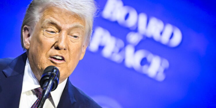 (ANSA) – ROMA, 22 GEN – Il presidente Usa Donald Trump ha firmato lo Statuto del Board of Peace e ha invitato sul palco i 20 rappresentanti dei paesi che hanno aderito al Consiglio. (ANSA).