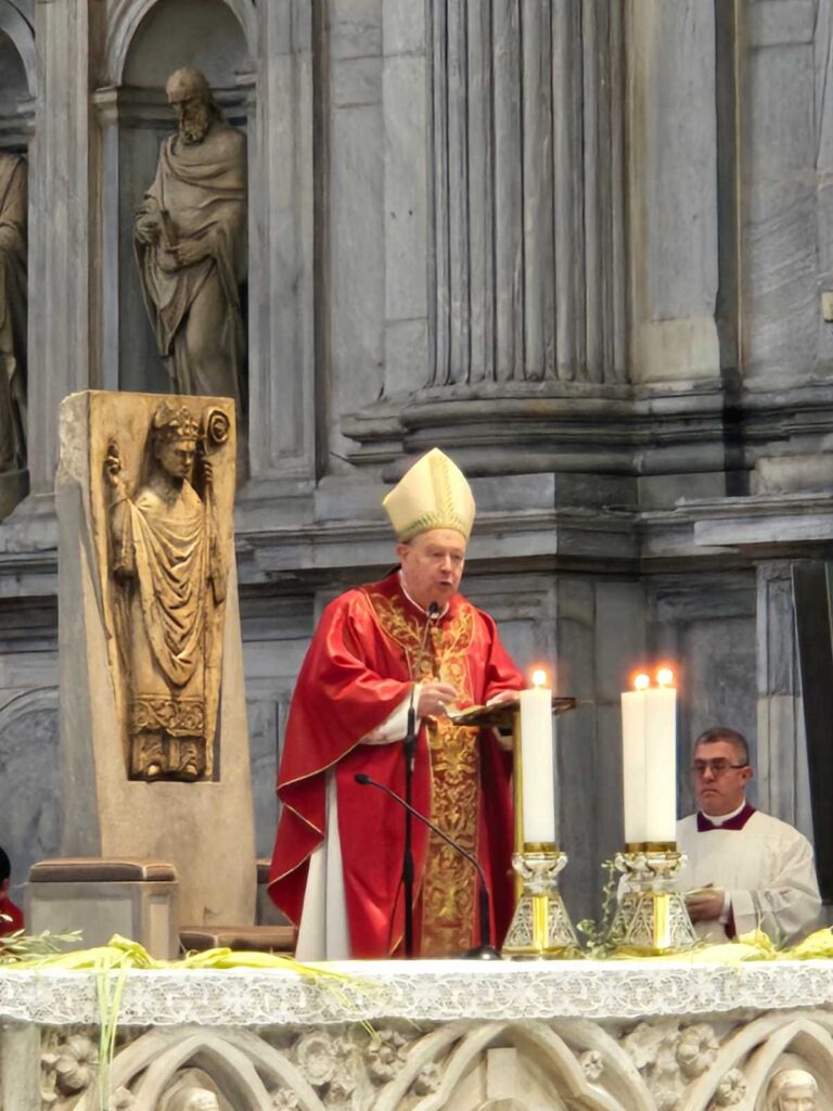 “Eccoci giunti alla grande settimana nella quale accompagneremo Gesù nella sua passione, manifestazione estrema dell’amore di Dio, che attraverso Cristo suo figlio ha vinto il male prendendolo totalmente su di sé. – ha detto il cardinale Cantoni nell’omelia – La celebrazione di questa mattina è iniziata con il ricordo storico dell’entrata di Gesù nella Città santa a dorso in un asinello. Non è certo una entrata maestosa e solenne, come da sempre ambiscono fare i potenti della terra. È piuttosto l’ingresso di un Dio umile, di un Dio mite. Così Egli continua ad agire nella storia adoperando sempre, fino ad oggi, mezzi poveri, strumenti umili, tanto da essere incompreso e deriso. Usa segni che però lasciano trasparire la fedeltà ostinata di Dio che si impegna efficacemente per i suoi figli, evitando di sentirsi in ogni modo al centro dell’attenzione e di essere riconosciuto nella sua grandezza, così che noi poi ci sentiamo in obbligo di seguirlo. Durante questa settimana, – ha concluso Cantoni – troviamo il tempo per contemplare il Crocifisso: è la misura dell’amore di Dio per noi ciascuno di noi. Da questo gesto impariamo noi pure a perseverare nell’amore costoso e sacrificale prendendoci cura degli altri, in modo continuativo, senza paura di spendere la vita per Dio e per i fratelli. Perché in questo sta la vera grandezza della vita, a imitazione di Colui che ci ha amati per primo e ci ha mostrato l’amore infinito del Padre”.