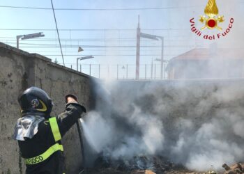 Sterpaglie in fiamme a Grandate, in via Giovio, a poca distanza dalla rete ferroviaria. Il clima di queste ore ha ...