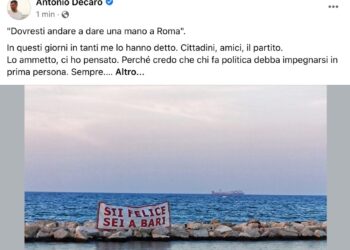 (ANSA) - BARI, 27 LUG - Con un post su Facebook il sindaco di Bari e presidente Anci Antonio Decaro, ...