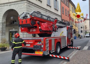 Como, tegole pericolanti in via Rodari, Intervento dei vigili del fuoco