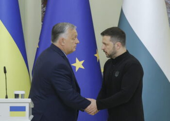 Zelensky al summit di Budapest, stretta di mano con Orban
